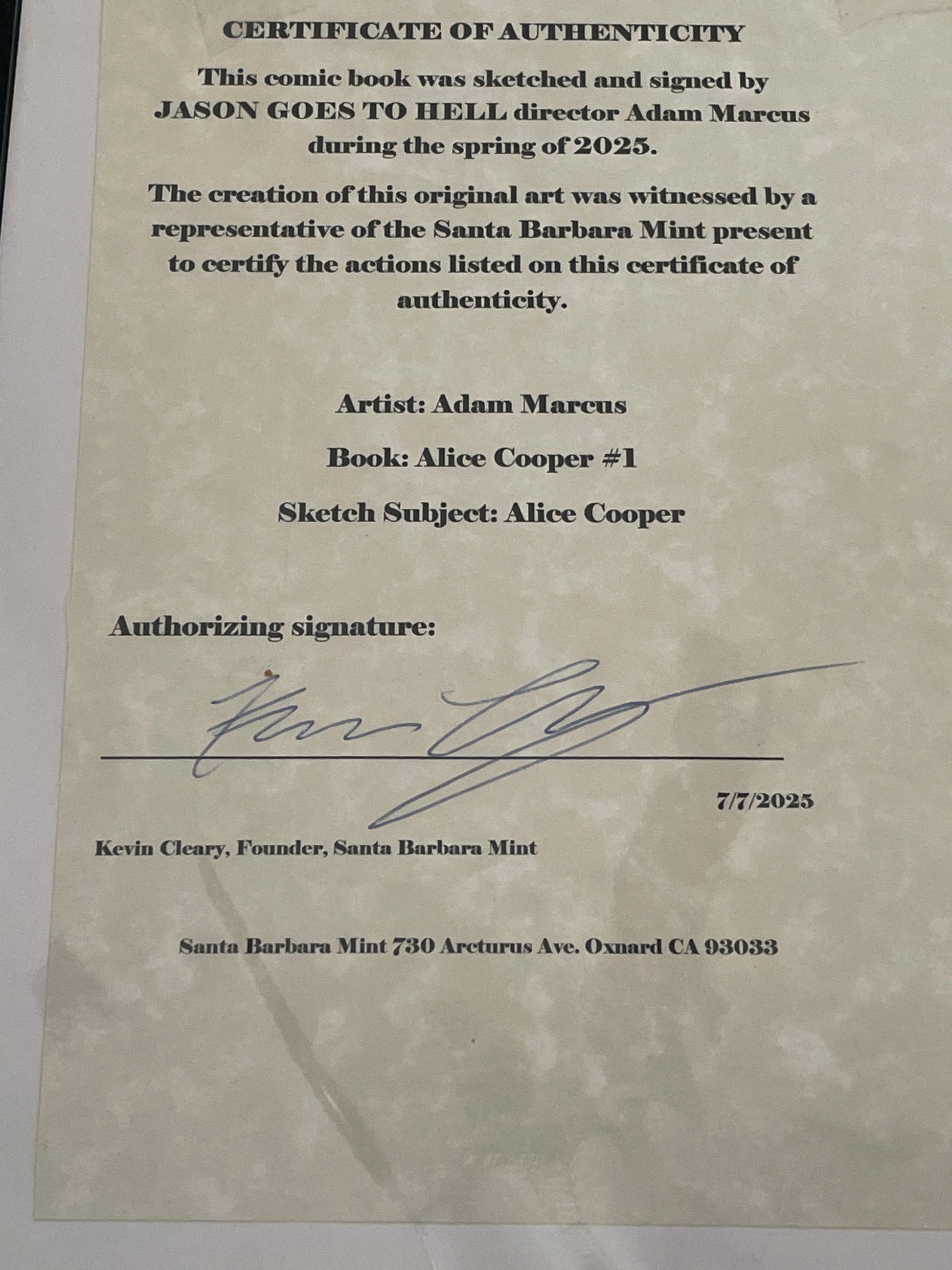 Alice Cooper, by Adam Marcus, Director of Jason Goes to Hell, a One-of-a-Kind piece of Original Art on an ALICE COOPER #1 sketch cover!