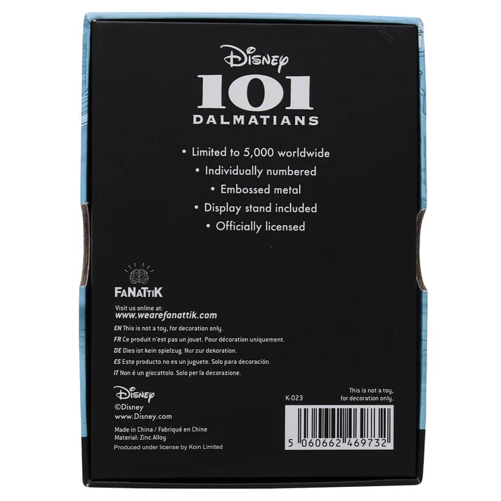 Officially Licensed by Disney, this embossed highly detailed 101 Dalmatians Ingot is limited worldwide to 5,000.