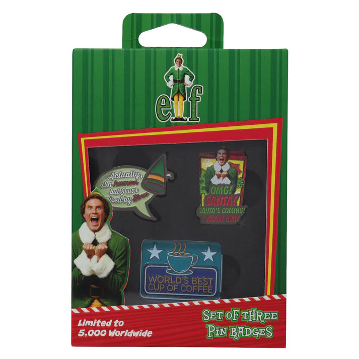 This triple set of Elf pin badges is officially licensed and features some iconic Buddy phrases.