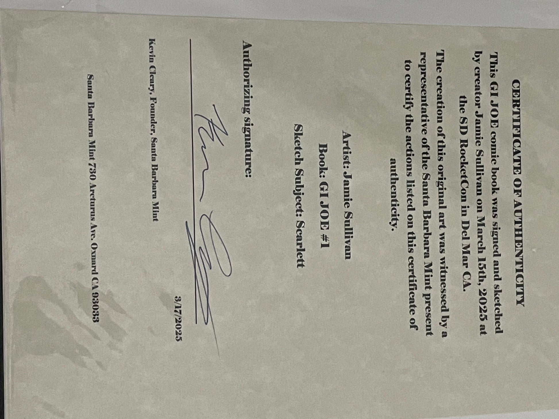 GI JOE's SCARLETT, as drawn by legendary GI JOE artist Jamie Sullivan, a One-of-a-Kind Piece of Original Art on a GI JOE #1 sketch cover!