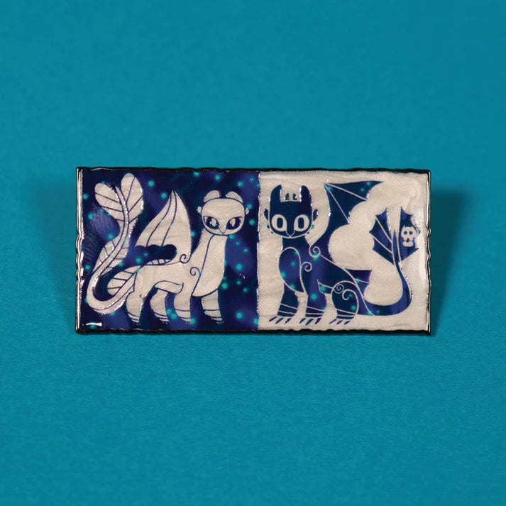 Celebrate this beautiful and mysterious dragon with this ceramic style enamel pin badge.