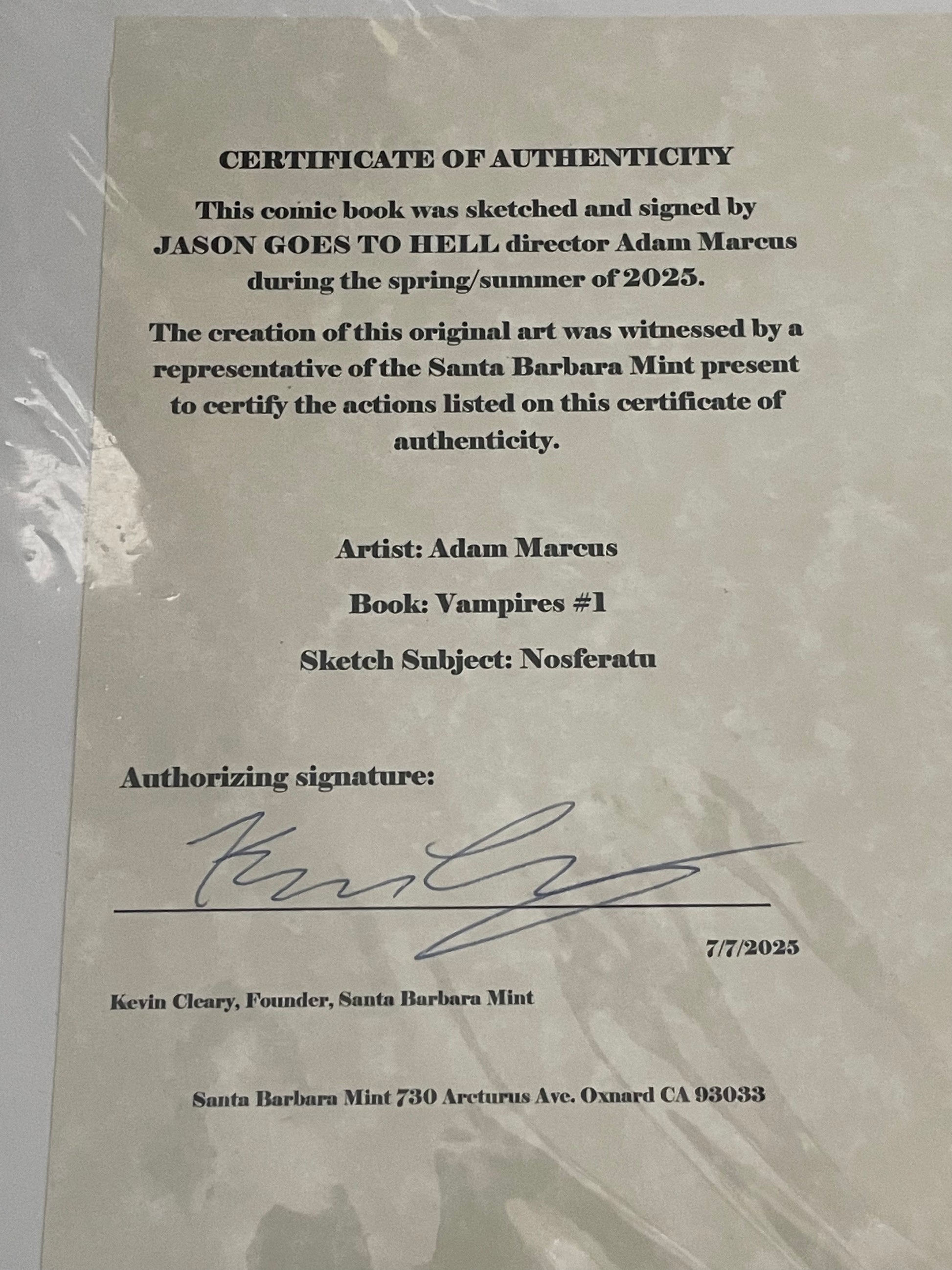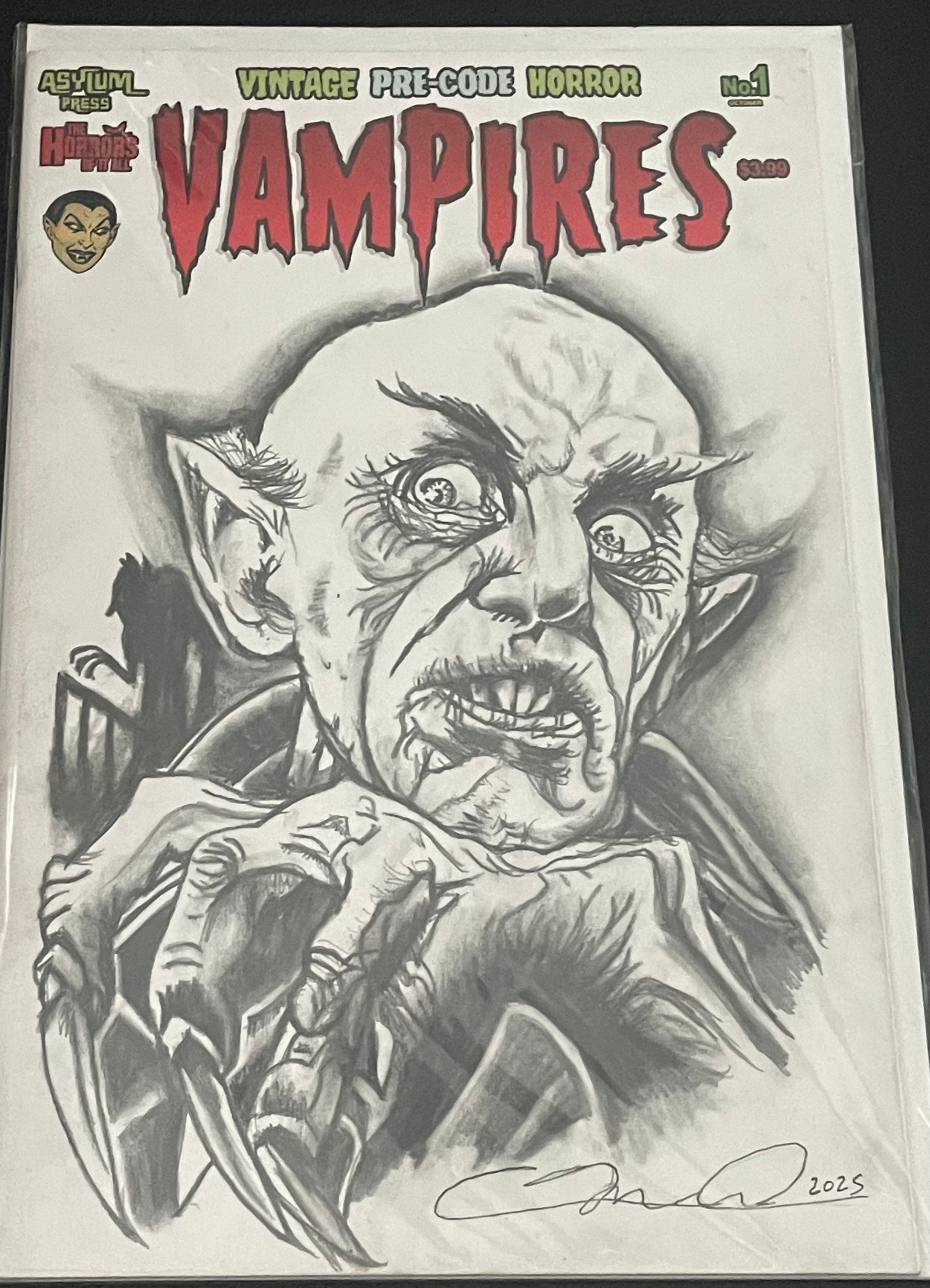 Nosferatu, the Original Vampire, as drawn by Adam Marcus, Director of Jason Goes to Hell, a One-of-a-Kind Piece of Original Art on a VAMPIRES #1 sketch cover!