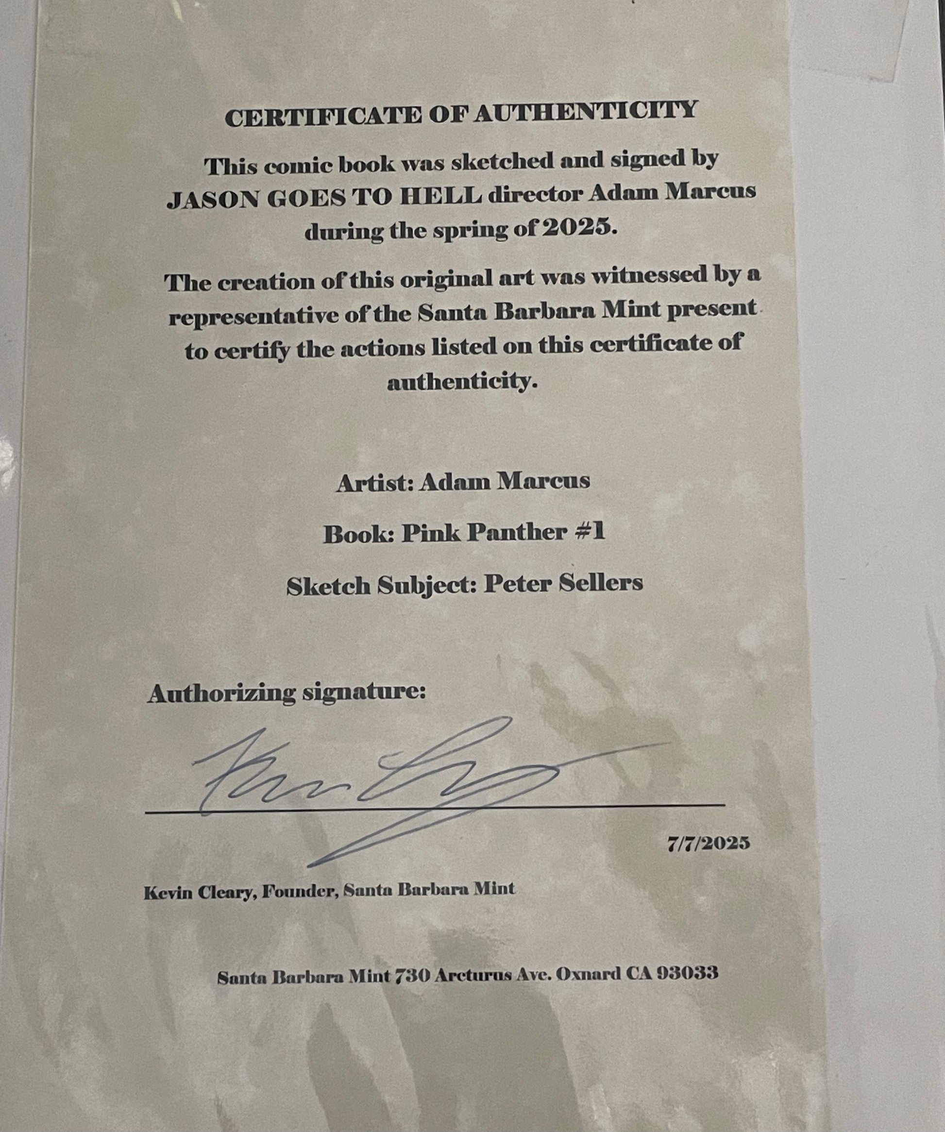 Adam Marcus, Director of Jason Goes to Hell, Peter Sellers/Inspector Clouseau Pink Panther Movie One of a Kind Original Art on a Pink Panther #1 sketch cover!