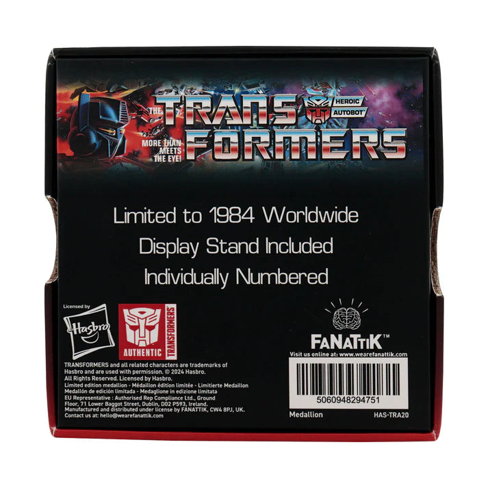 Celebrating 40 years of the good guys, this Transformers Autobot Medallion is finished in a deep metallic red in a nod to their leader Optimus Prime, and is limited to 1,984 worldwide reference the year of release of the Transformers.